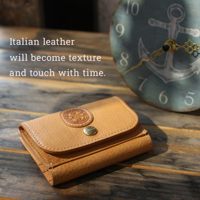 | 自分色に馴染んでゆく経年変化を楽しめるシリーズ。 イタリア・トスカーナ州にある老舗タンナーで、じっくりと丁寧に作られたフルベジタブルタンニン鞣しの牛革を使用しました。素材の風合いをより楽しめるよう、裏地は付けず中作りもレザー仕立てに。イタリアンレザーの香りや手触り、エイジングのお手入れなど、素材を楽しみながら長くお使いいただきたいシリーズです。 四方口の大きな小銭入れタイプの二つ折り財布です。紙幣もしっかり収納でき、カードは4枚収納可能。シンプルだからこそ使いやすいスマートなお財布に仕上げました。使うほどに味わい深く変化する革の経年変化も楽しめます。 |