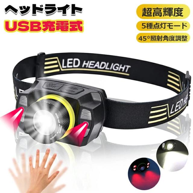ヘッドライト USB充電式 LEDライト 超軽量 超高輝度 明るい ヘッドらいと センサー機能 ズームレンズ 5種点灯モード SOS点滅 防水防塵 角度調整可 超強力ヘッドライト ヘルメット 釣り ライト 登山/作業用/ランニング/キャンプ/防災/停電に最適