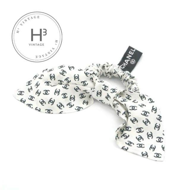 シャネル CHANEL ヘアアクセサリー ホワイト ブラック ココマーク リボン シュシュ ヘアゴム