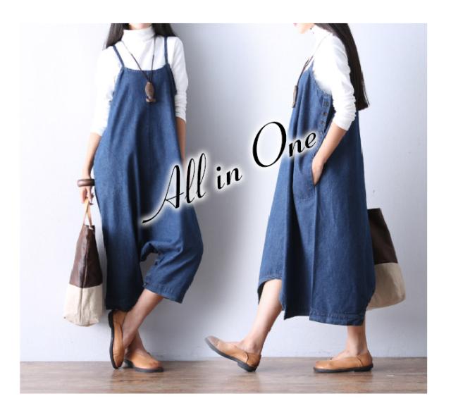 ★ゆったりデザインのナチュラル感が可愛いオールインワン、デニム風サロペットです。 裾にボタンがついているので、ワンピースにもサロペットにもなる嬉しい2way! Aラインシルエットで体系もしっかりカバーしながら、オシャレ感もアップしてくれるアイテムです。