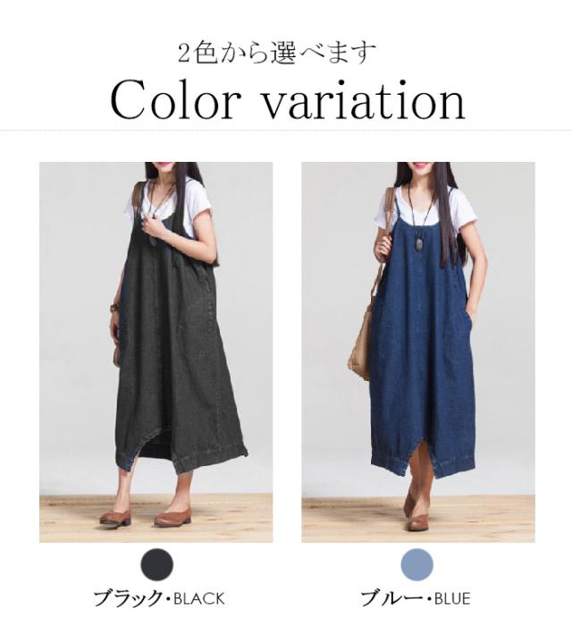 サロペット デニム パンツ レディース オールインワン ゆったり マキシワンピース つなぎ オーバーオール 体型カバー