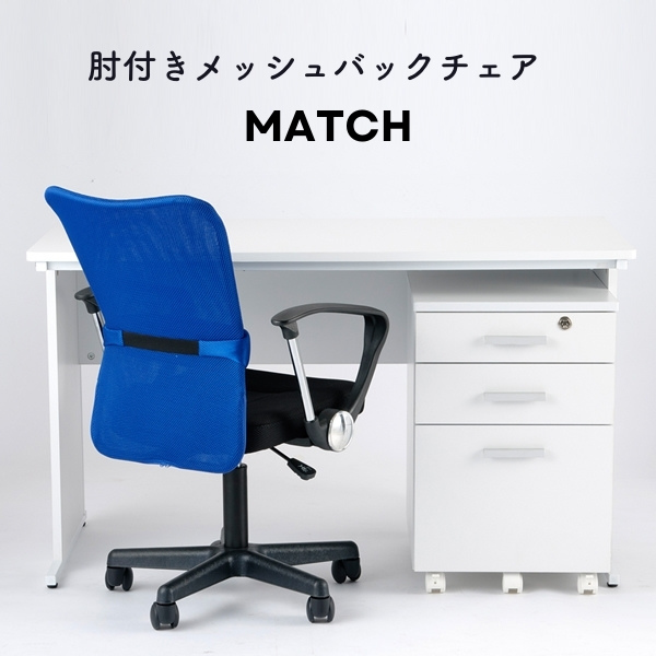 オフィスチェア Match メッシュチェア メッシュ 回転 椅子 イス キャスター付き ハイバック チェア オフィス 背もたれ 肘付き ブラック