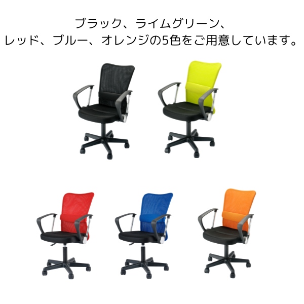 メッシュチェア パソコンチェア オフィスチェア ワークチェア OAチェア 事務イス デスクチェア 学習椅子 腰がラク コンパクト カラフル 来客 受付 疲れにくい 通気性 ランバーサポート 書斎 オフィス 塾 肘付き 安い コストパフォーマンス お手軽 ガス圧 ワンタッチ 腰痛
