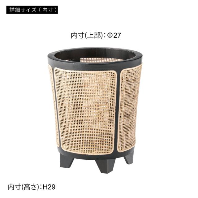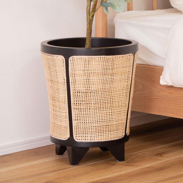 プランターカバー プランター カバー 植物 ラタン 藤 天然木 ミンディ ラウンド 丸 脚付き ブラック 黒 ナチュラル モダン アジアン リゾート シンプル おしゃれ 新生活(代引不可)【送料無料】