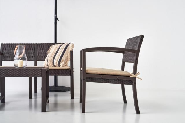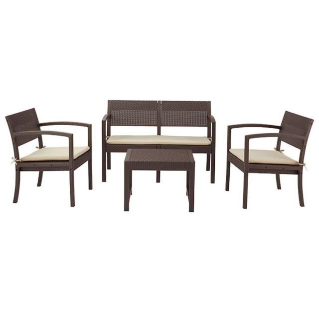 ガーデンリビング 4点セット リビングテーブル リゾート 庭 屋外 アジアン おしゃれ ブラウン テーブル チェア セット インテリア 北欧(代引不可)【送料無料】