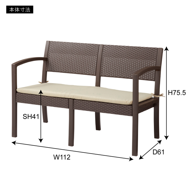 1Pソファ:幅58.5×奥行61×高さ75.5×座面高さ41 2Pソファ:幅112×奥行61×高さ75.5×座面高さ41 テーブル:幅58×奥行51×高さ42 cm