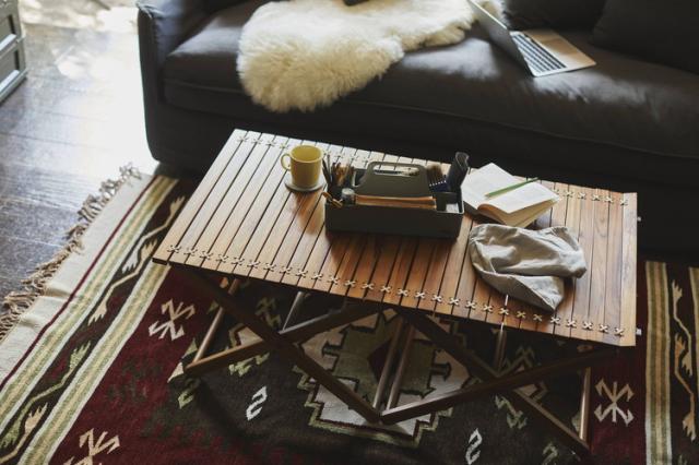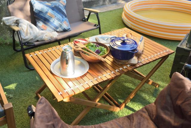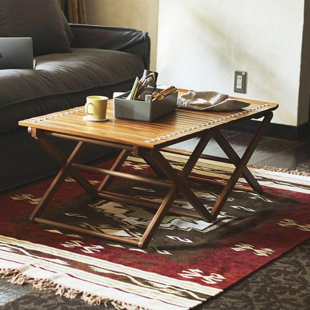 ロールトップテーブル ロールトップ テーブル 机 アウトドアテーブル フォールディングテーブル 折りたたみ アウトドア キャンプ ロータイプ 低い 低め 収納 持ち運び チーク材 本革 天然木 木製(代引不可)【送料無料】