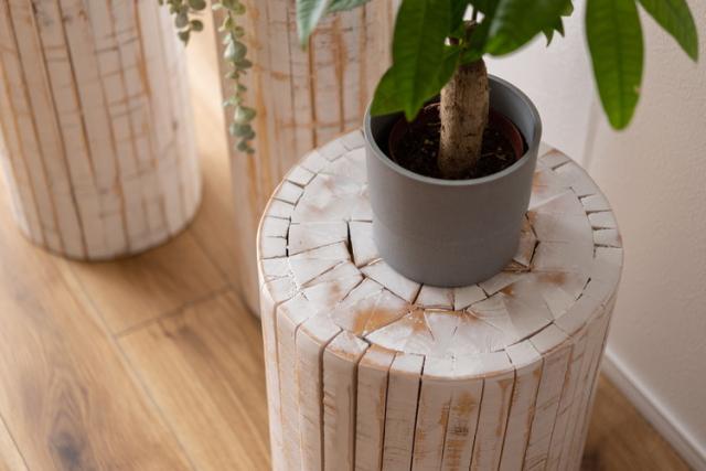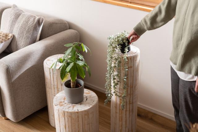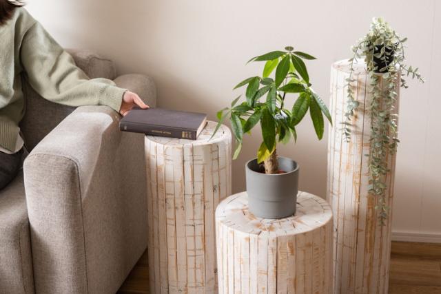 ひとつひとつ表情の違う丸太型のグリーンベース。ホワイトカラーのナチュラルな雰囲気がグリーンを際立たせます。