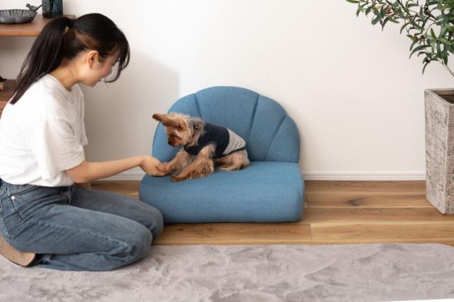 ペットソファ ソファ コンパクト ペット 犬 猫 うさぎ 脚付き ブルー ふっくら 椅子 ローソファ かわいい おしゃれ ペット用品(代引不可)【送料無料】