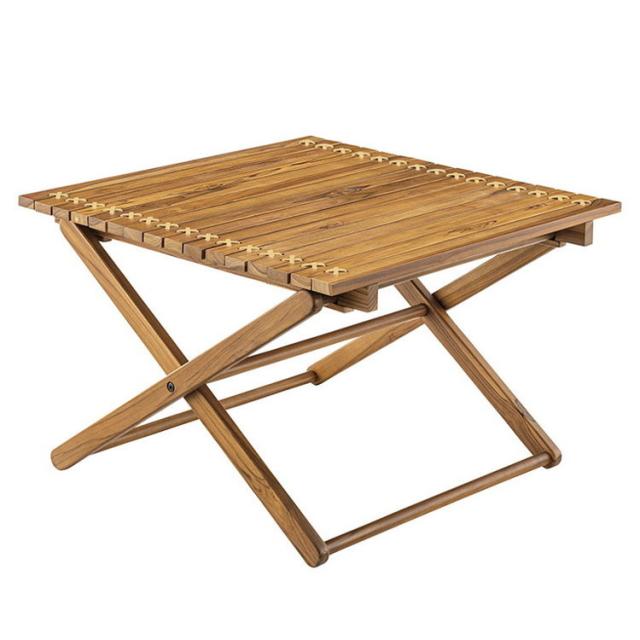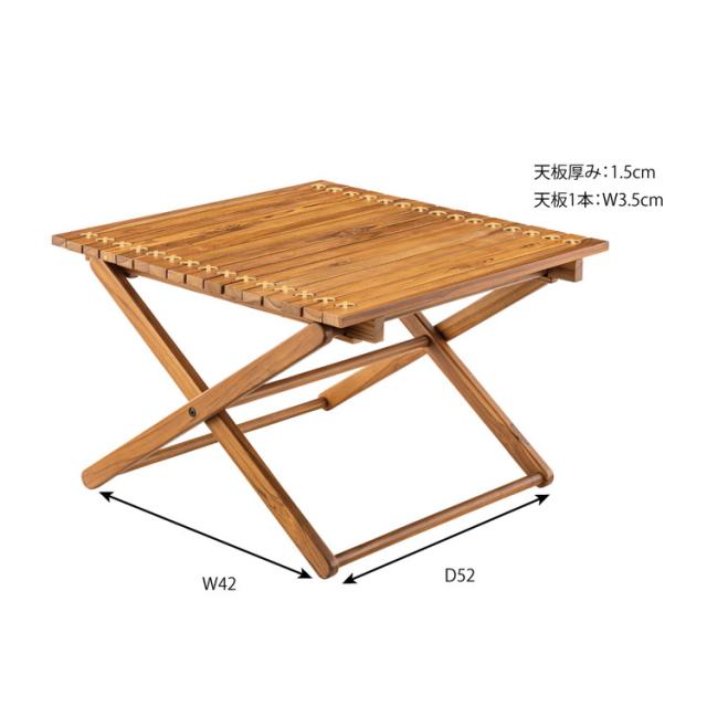 ロールトップテーブル ロールトップ テーブル 机 アウトドアテーブル フォールディングテーブル 折りたたみ アウトドア キャンプ ロータイプ 低い 低め 収納 持ち運び チーク材 本革 天然木 木製(代引不可)【送料無料】