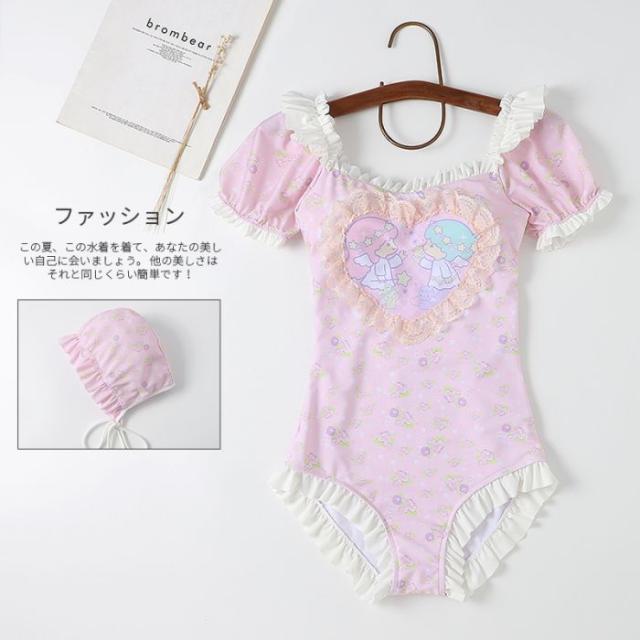 日系ガールズピンクピュア欲風かわいい甘いガールズワンピース水着かわいいロリタ水着