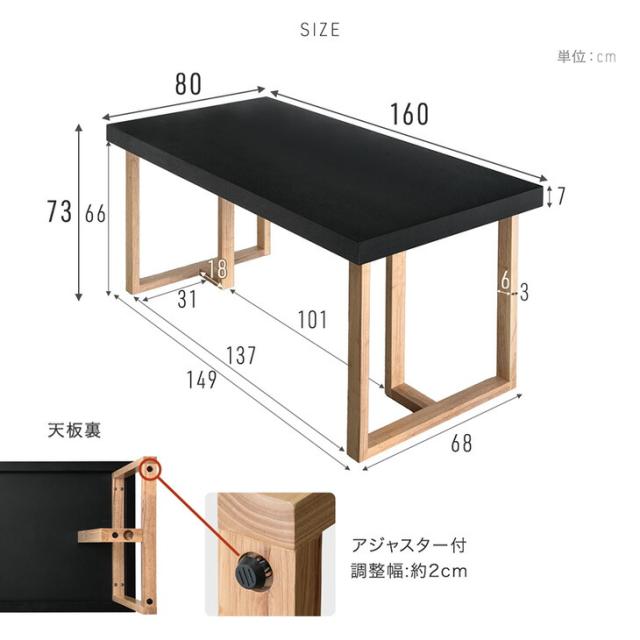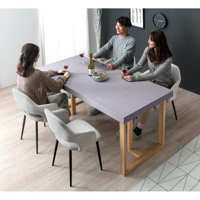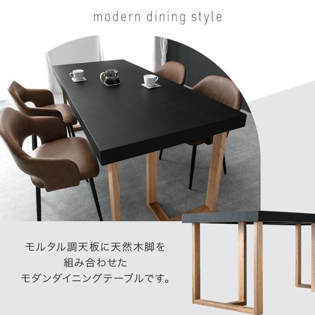 極厚 天板 ダイニングテーブル 天然木脚 4人掛 160センチ ダイニング テーブル 食卓 食卓テーブル テーブル単品 単品 4人用 4人 160cm グレー ブラック モルタル 調 木製 木目 木 北欧