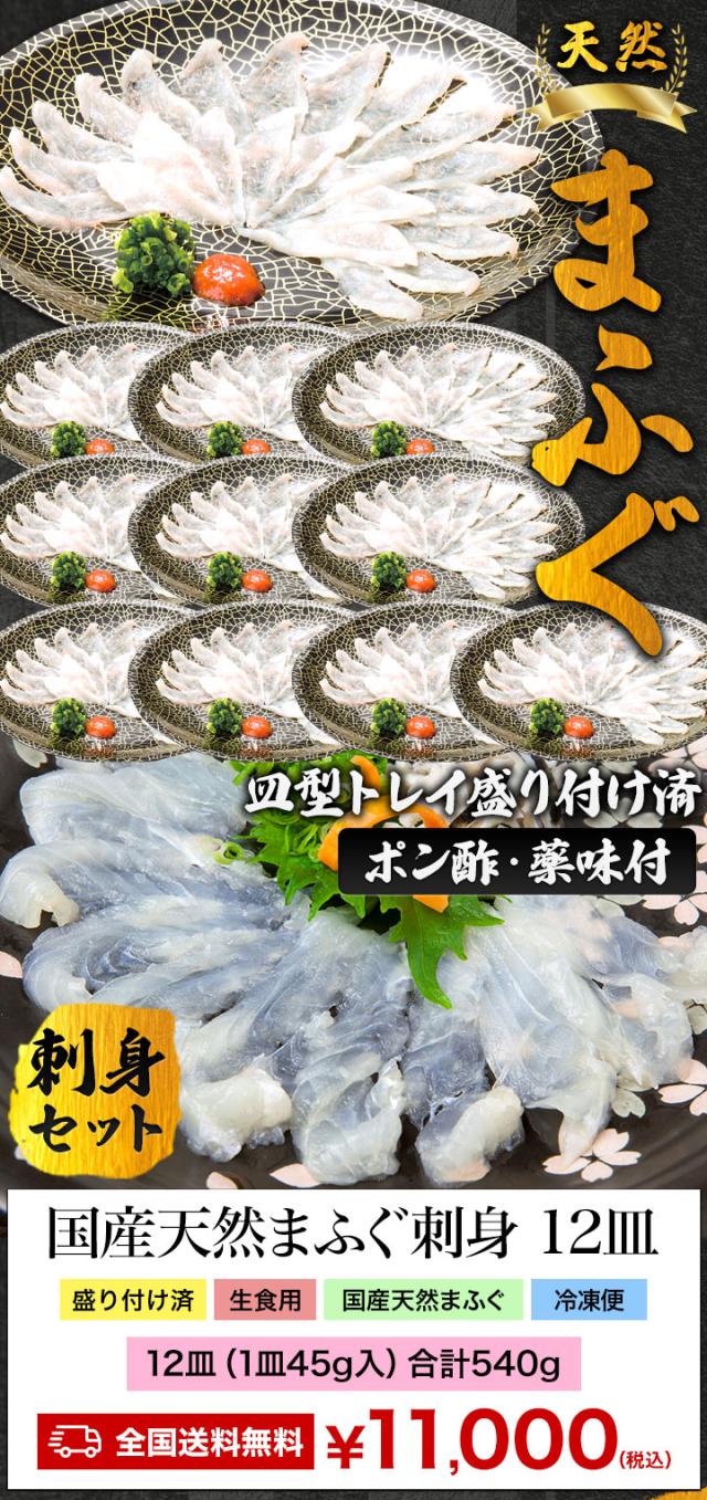 【お値引きクーポン配布中】12皿合計540g 国産天然まふぐ刺し身 ふぐ フグ 河豚 刺身 生食 天然 てっさ まふぐ 下関 山口 盛り合わせ 年末年始 正月 おせち 満足良品館 送料無料