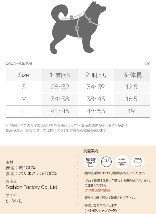 【M】首回り:34~38cm/胴回り:38~43cm/着丈:16.5cm