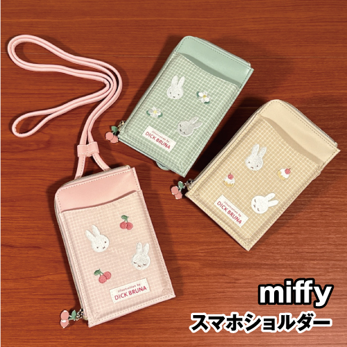 送料無料 MIFFY/ミッフィー スマホショルダー/チェックシリーズ DBM-2438-40 /ピンク アイボリー グリーン さくらんぼ ケーキ お花
