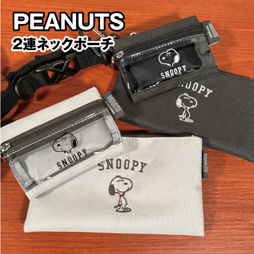 送料無料 ピーナッツ/スヌーピー 2連ネックポーチ SPIK-292-3 /チャコールグレー ライトグレー
