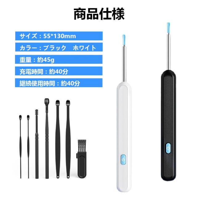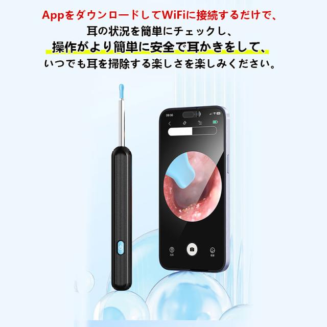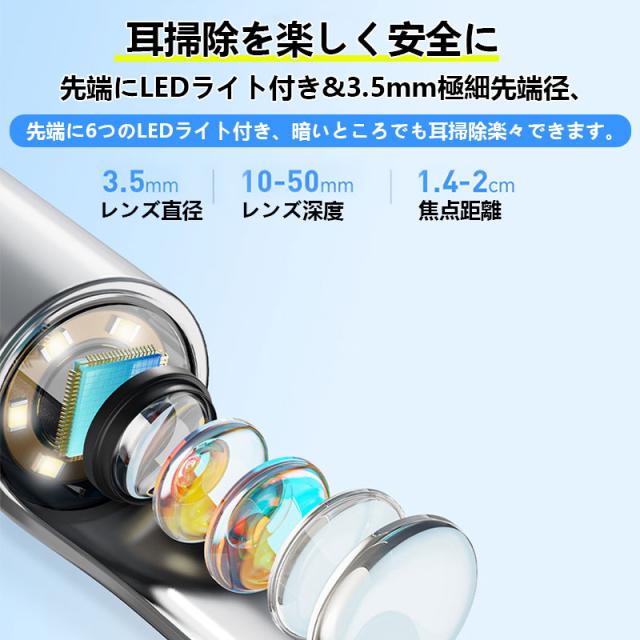 即納 耳かき カメラ 800万画素 7点セット付き みみかき LEDライト 耳掃除 イヤースコープ IP67防水 3.5mm極細レンズ WIFI接続 温度制御