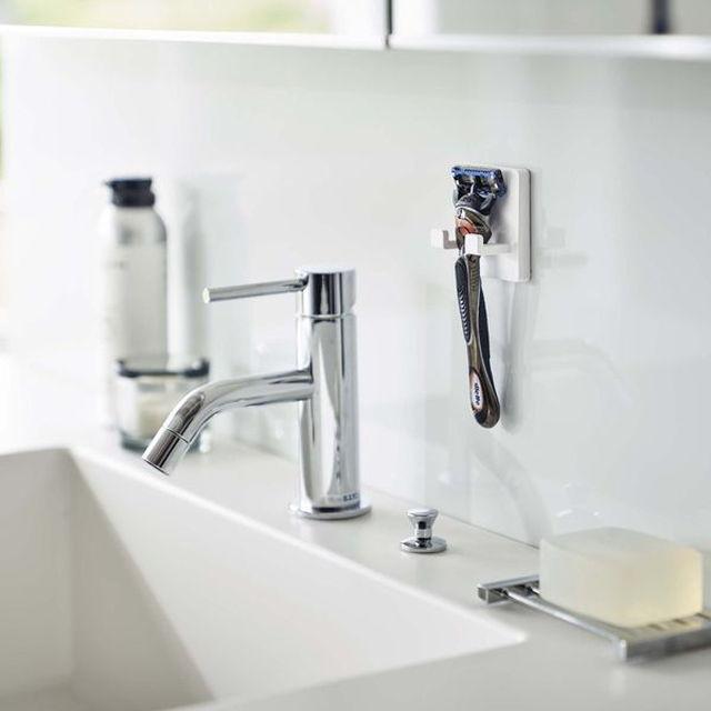 ●フィルムフックで好きな位置に簡単取り付けのシェーバーホルダー。
