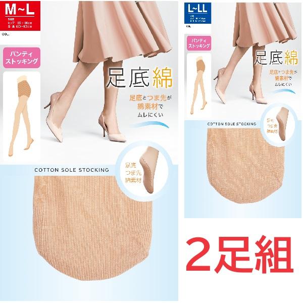 足底綿ストッキング2足組つま先補強、かかと補強、綿素材でムレにくいパンティストッキング