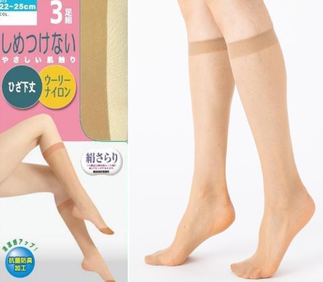ひざ下ハイソックス3足組しめつけない、やさしい肌ざわり、ウーリーナイロン、抗菌防臭
