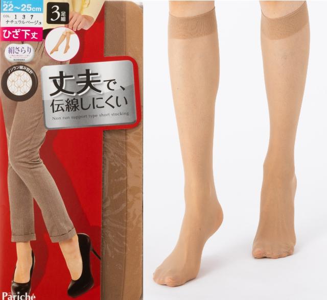 ひざ下ハイソックス3足組丈夫、伝線しにくい、ノンラン編み、つま先ヌード