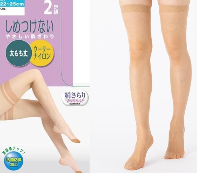 2足組レディース太もも丈ニーハイストッキング送料無料 柔らかウーリータイプ、抗菌防臭、ウーリーナイロン糸使用