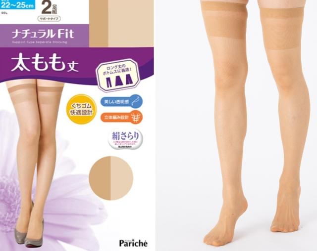 太もも丈ガーターストッキング2足組 美しい透明感、立体編み設計、口ゴム快適設計