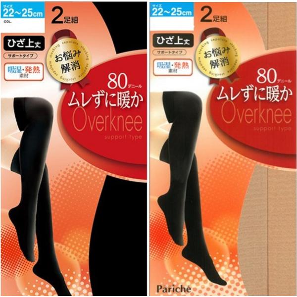 ひざ上丈タイツ 80デニール ブラック ベージュ 2足組 暖かソックス オーバーニー サイハイ ニーハイ 吸湿 発熱 お出かけ 寒い日に履きたい オシャレ靴下 冬