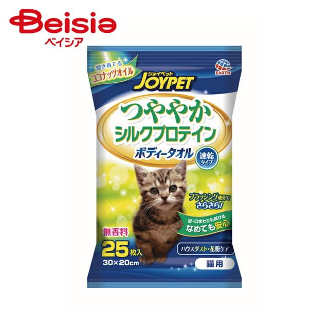 | 商品特徴 | シルクプロテインとヒアルロン酸が愛猫のデリケートな皮ふ・被毛にうるおいと輝きを与える。拭くことでハウスダスト・花粉から守る。毎日使えて、汚れスッキリ。なめても安心な成分を使用。 |
