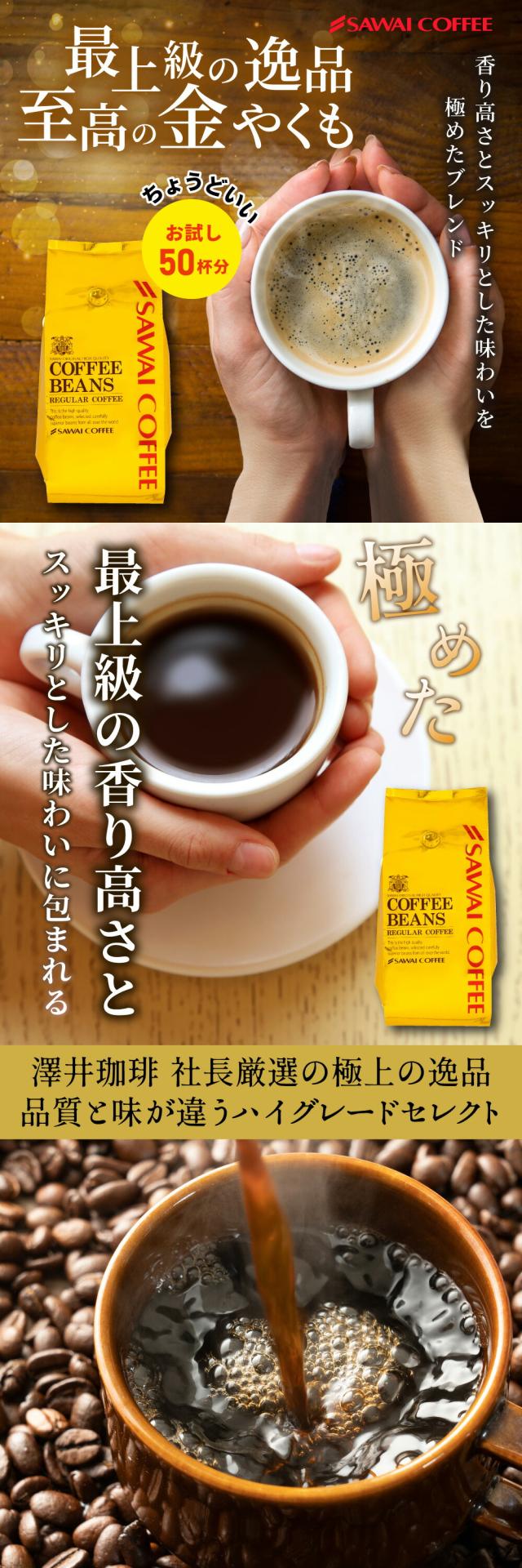 焙煎したて レギュラー コーヒー豆 お試し 500g 珈琲豆 コーヒー 福袋 大容量 中挽き/豆のまま コーヒー専門店 50杯分 セット 金のやくもブレンド 澤井珈琲