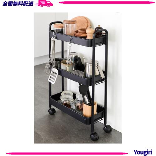 [山善] キッチンワゴン (スリム) キャスター付き 3段 幅43.5×奥行18.5×高さ74.5cm ワゴン 組立かんたん ブラック LBW-3S(MBK)