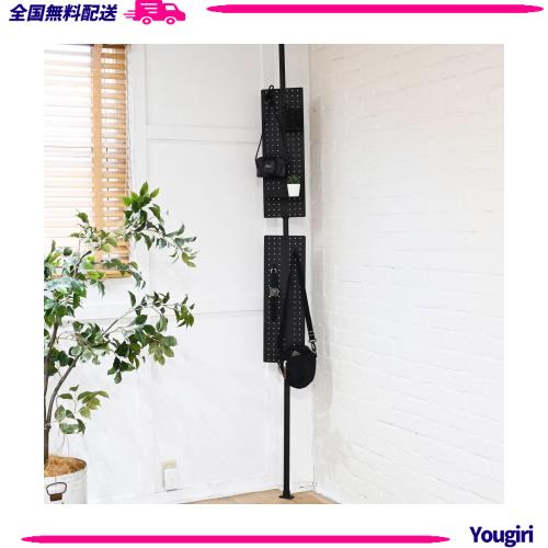 [山善] 突っ張り パーテーション 有孔ボード 棚 パンチングボード ラック 壁面収納 カンタン設置 幅20×奥行7×高さ190-260cm 隙間収納