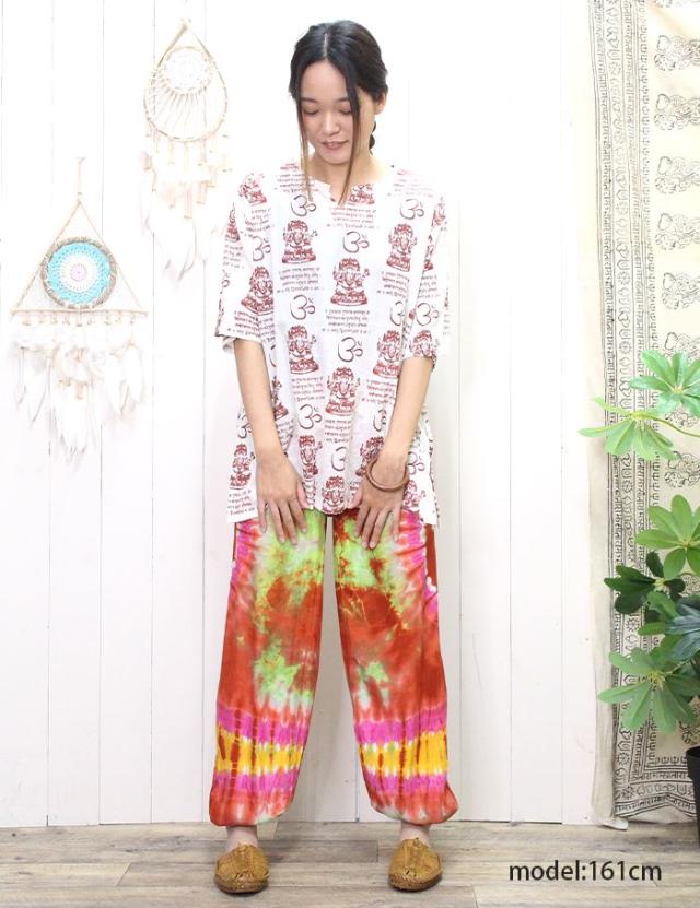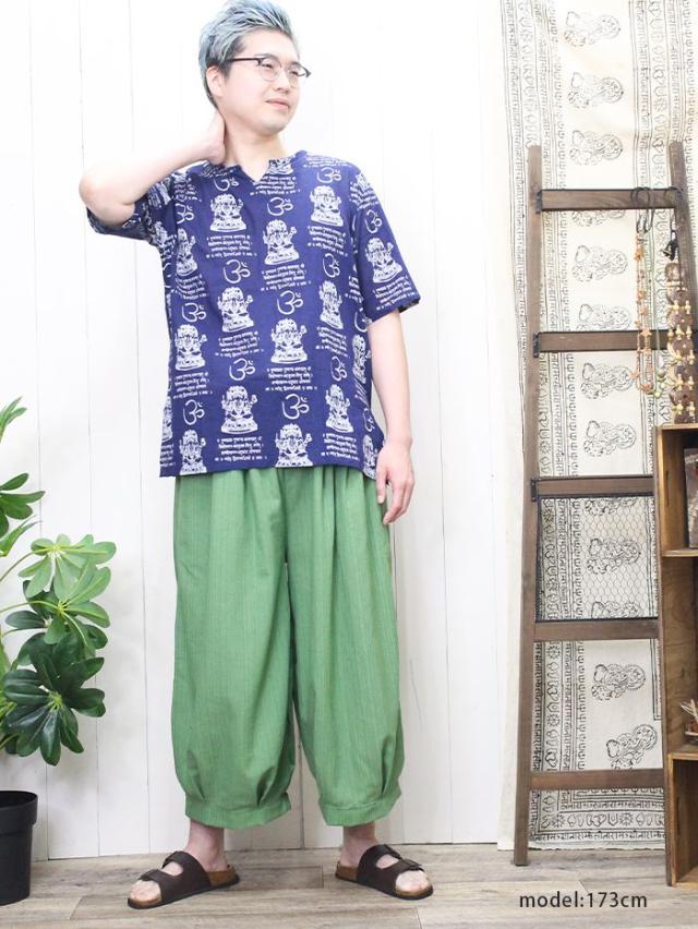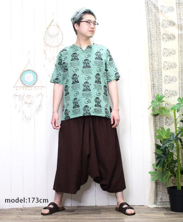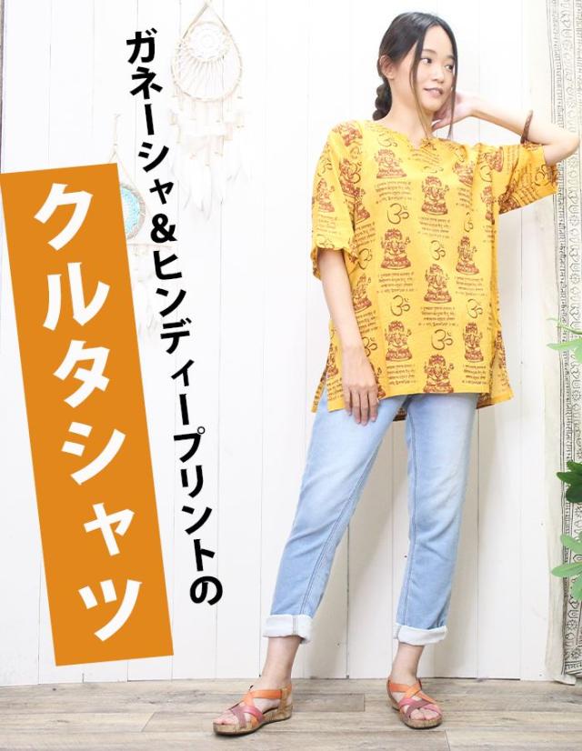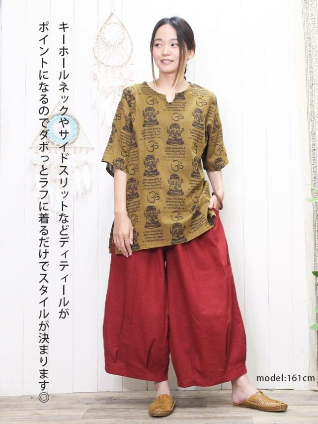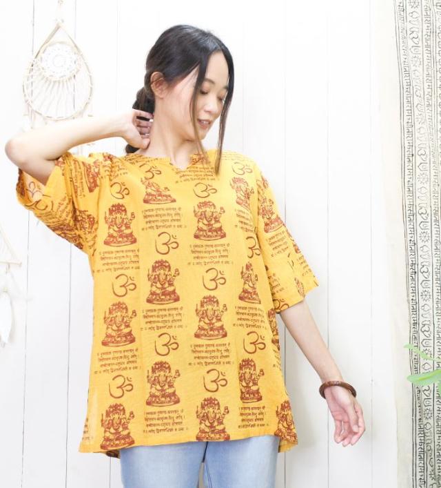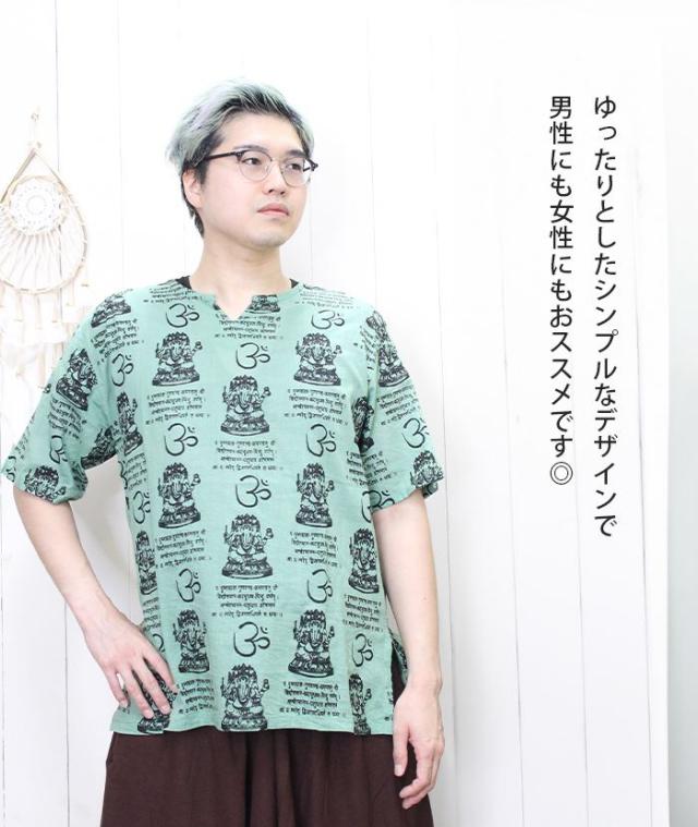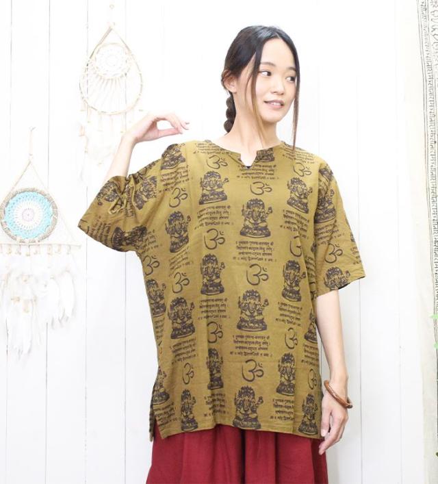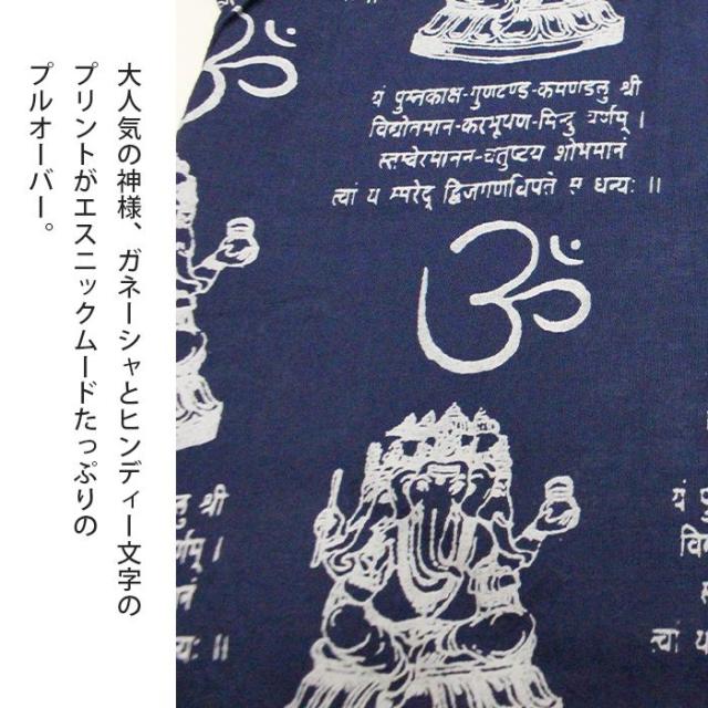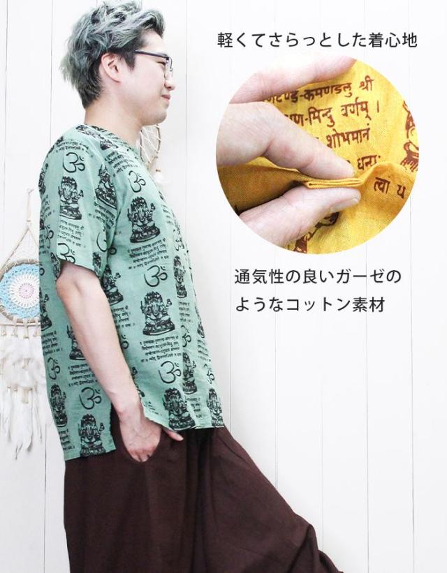 クルタ シャツ エスニック 夏 半袖 アジアン ファッション ユニセックス シャツ クルタ ! ガネーシャ & ヒンディー プリント プルオーバー 2025年春夏