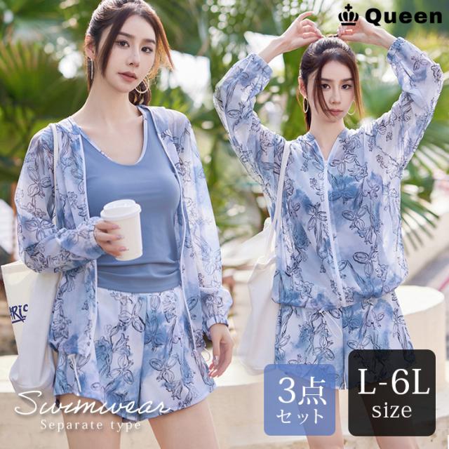 大きいサイズ レディース フィットネス水着 セパレート ラッシュガード タンクトップ パンツ 3点セット L LL 3L 4L 5L 6L (m8034)