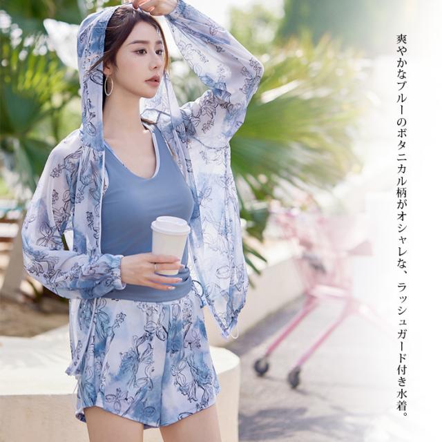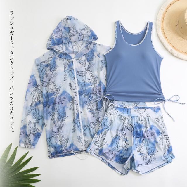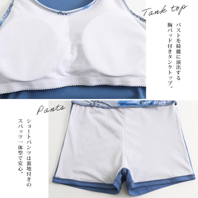 水彩柄フィットネス水着3点セット