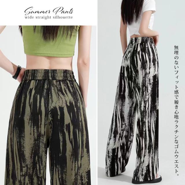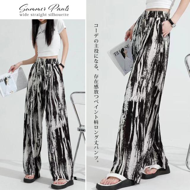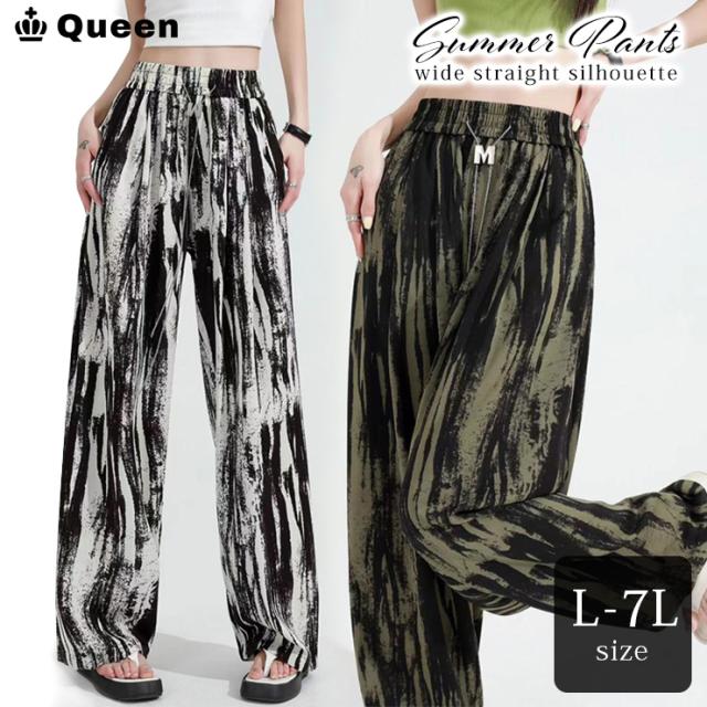 大きいサイズ レディース ワイドパンツ ロング丈 ペイント柄 Y2Kファッション 春 夏 秋 L LL 3L 4L 5L 6L 7L (91526-1)