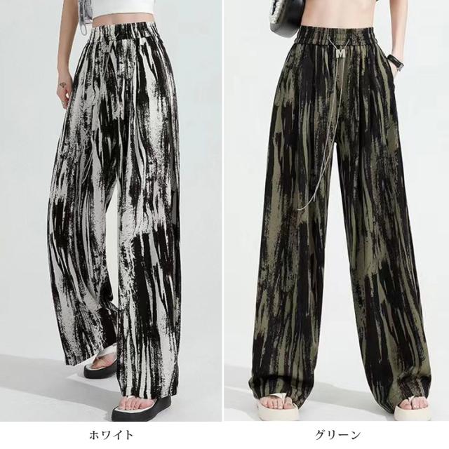 ★☆大きいサイズ レディース ワイドパンツ ロング丈 ペイント柄 Y2Kファッション 春 夏 秋 L LL 3L 4L 5L 6L 7L ホワイト グリーン☆★