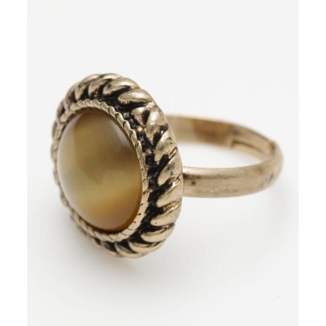 キャッツアイのストーンが印象的なリング。クラシカルなフレームが雰囲気を盛り上げます。