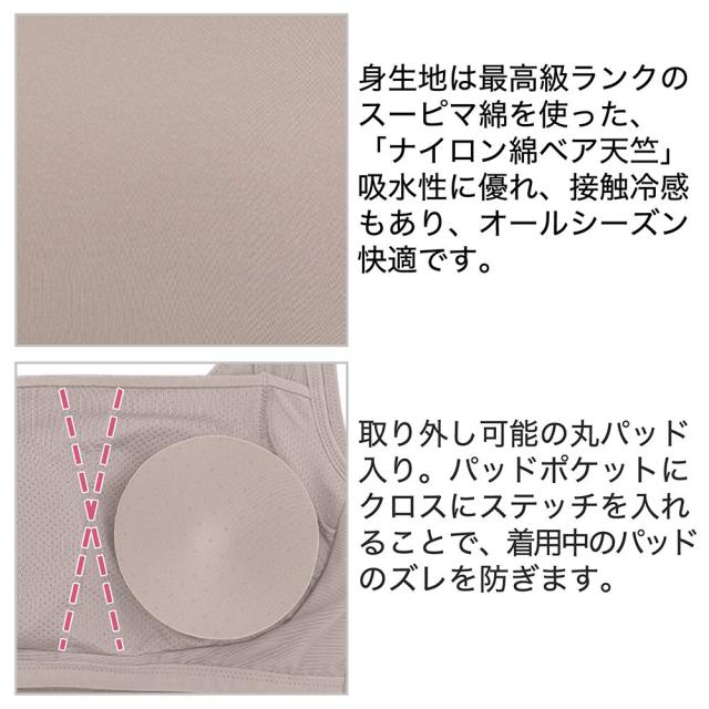 フルカップ/ワイヤーなし(ノンワイヤー)/ホックなし/パッド(取り外し可)/バックパワーネット