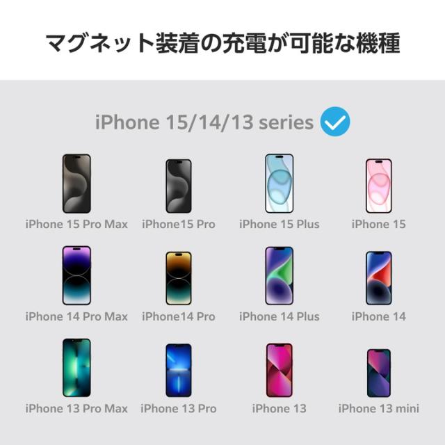 マグネットでピタッと簡単充電!MagSafe対応iPhoneにマグネットで取り付け、7.5Wのワイヤレス充電ができるモバイルバッテリーです。折りたたみ可能なスタンド付きで、外出先でも縦置き・横置きでスマートフォンの操作や動画視聴を手軽に楽しめます。