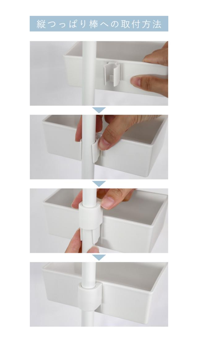 突っ張り棒 縦つっぱり棒用ボックス マットホワイト tatecco ( キッチン つっぱり棒 突っ張り つっぱり パーツ アクセサリー 棚 ボックス シンク上収納 シンク上 シンク上ラック スパイスラック 調味料スタンド トレー )