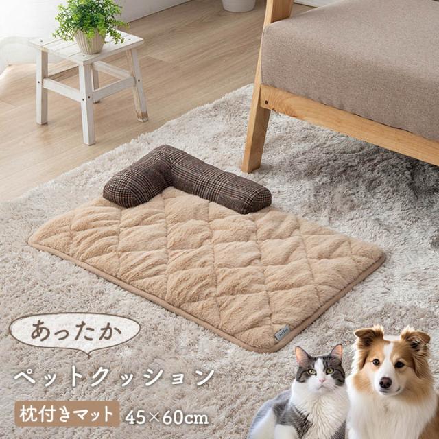 まくら付き 枕付き ペットマット 「 バラン 枕付きマット 」 45×60cm あご枕 ペット ベッド マット かわいい おしゃれ 犬 猫 枕 まくら マクラ あごのせ あご乗せ リラックス グレー ブラウン 冬 冬用 あったか