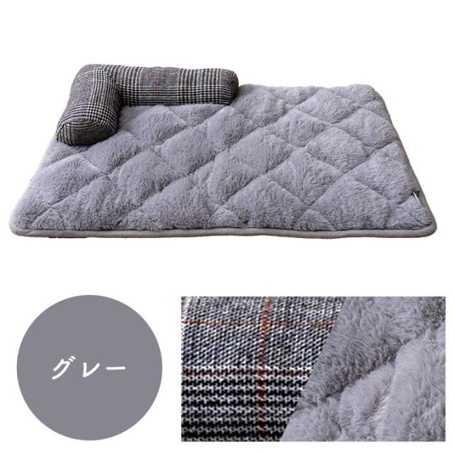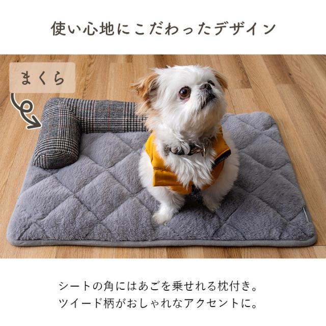 | ■あごを乗せれる枕付きのマット ■ツイード生地とボア・ファーの組み合わせがおしゃれ ■裏面滑り止め付きなので安心 |