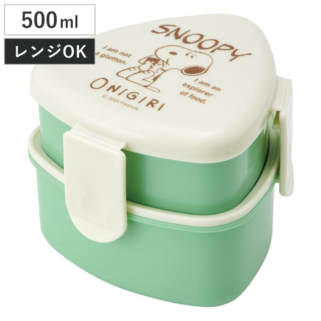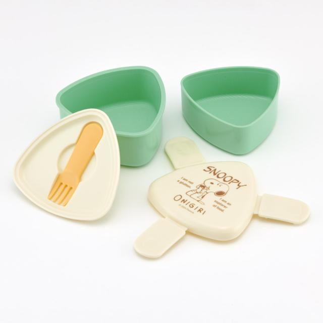 弁当箱 2段 500ml 抗菌三角おにぎりランチボックス スヌーピー おにぎり ( SNOOPY PEANUTS おにぎりケース おむすびケース 2個用 お弁当箱 レンジ対応 レンジOK おにぎり弁当 三角おにぎり フォーク付き )