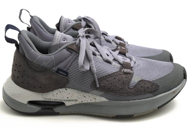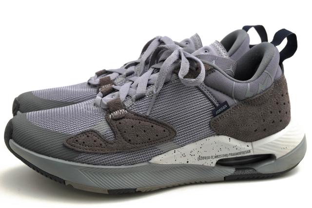 数多くの世界的ブランドとコラボレーションを発表しファッションシーンのカリスマである藤原ヒロシ氏が主宰する"FRAGMENT DESIGN(フラグメント デザイン)"とのコラボレーションモデル。CADENCE=リズムを刻むライフスタイルシューズとしてリリースされた同モデルは、パーティクルグレーのメッシュやスウェードをアッパーに採用しており、スポーティで洗練されたスタイルを構築。かかとのビジブルNike Airテクノロジーは高いクッション性能を約束。シュータンにはジャンプマン、ヒールサイドにはフラグメントのサンダーロゴと、JORDANの文字がデザインされている。