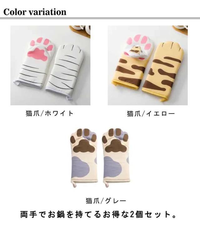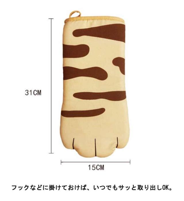 | 猫爪のかわいいキッチン用のミトン 両手でお鍋を持てるお得な2個セット。 生地は厚手で耐熱なので、しっかり持てて料理中に大活躍です。 使いやすいロングタイプ、全体をすっぽり包み込んでくれて、フィット感ばっちり。 フックなどに掛けておけば、いつでもサッと取り出しOK。 おしゃれなシンプルな手袋タイプのデザインでプレゼントにも最適! | |