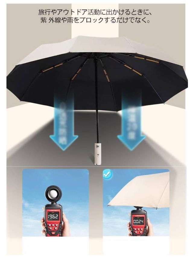 | ファン搭載!真夏の強い日差しを遮り、大切なお肌を太陽光線、紫外線からガードでき、日焼け対策アイテムとして猛暑を乗り切ります。 旅行やアウトドア活動に出かけるときに、紫 外線や雨をブロックするだけでなく。 天気が暑いときは、扇風機をオンにすることができます。クールな世界をお楽しみください 傘のハードルの上にファンを搭載。近い距離で真上から風があたるので、汗をかいた頭や顔に風があたると気化熱でしっかりと冷やしてくれます。傘にこもった空気を扇風機で追い出し、まるで木陰にいる涼しさが感じられます 耐久性のあるダブル骨デザインで一般的な傘よりはるかに頑丈で、豪雨、強風にもご安・心できます。 自動開閉機能が備わり、片手でワンタッチ操作できる折りたたみ傘です。 | |