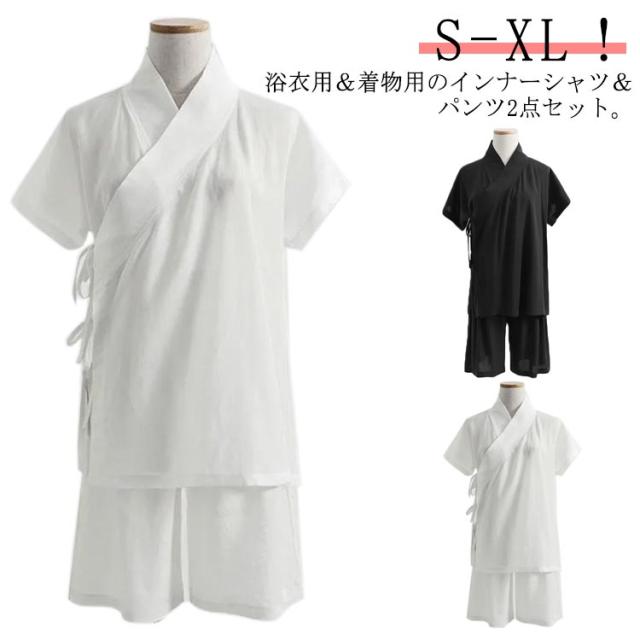 Tシャツ 襦袢 初心者 着物 半袖 上下セット 薄手 ショートパンツ 黒 メンズ 肌襦袢 ハーフパンツ レディース セットアップ ステテコ 涼しい 夏用 肌着 男女兼用 簡単 インナー 一体型 和装 浴衣 着物 下着 肌着 速乾 快適 女性 送料無料 白 ホワイト 半襦袢