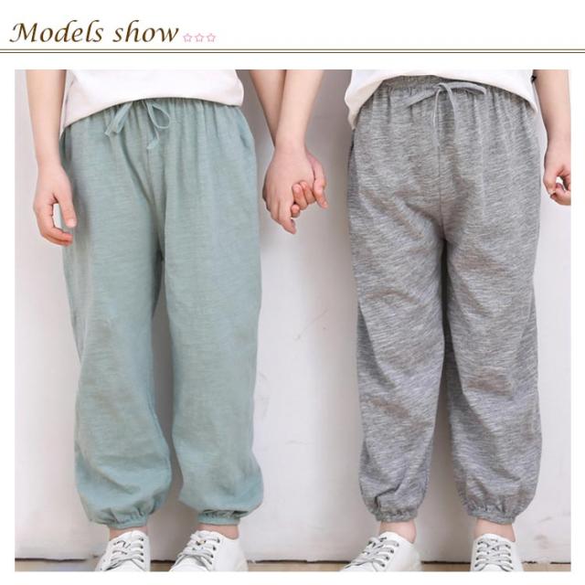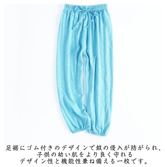 | お出かけはもちろん、おうちでゆったりと部屋着スタイルにも♪ 通気性抜群!薄手で涼しい!冷房用にもぴったりの男女児向け長ズボン。 足裾にゴム付きのデザインで蚊の侵入が防がられ、子供の幼い肌をより良く守れるデザイン性と機能性兼ね備える一枚です。 ズボンのウエストの部分と裾の部分はゴムで、伸縮性があるので着脱ぎしやすいです。 | |