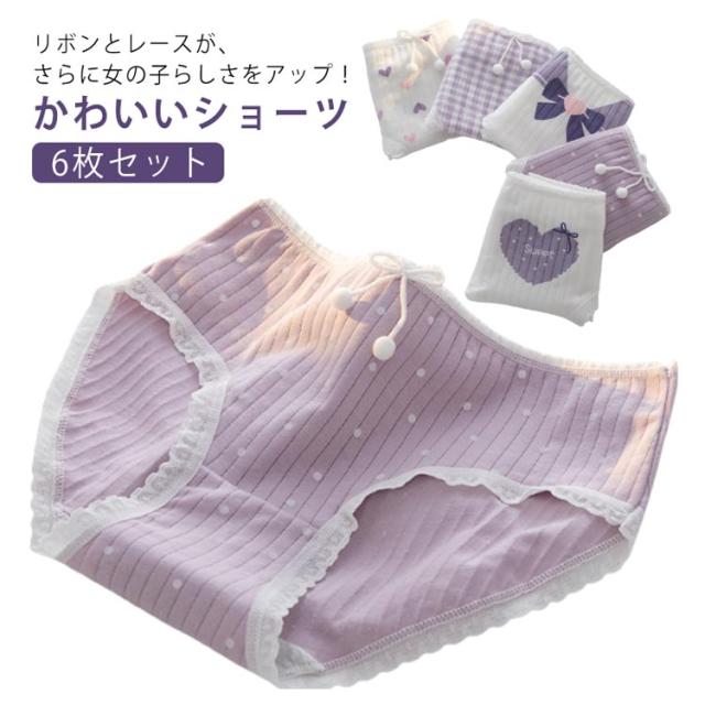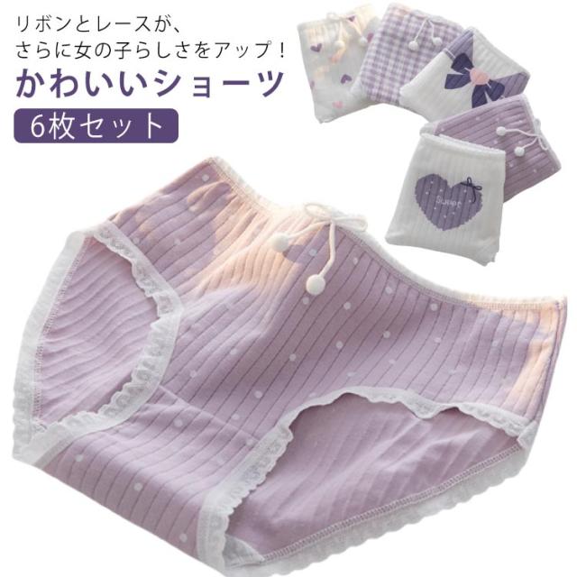 ショーツ 下着 レース 6枚セット リボン 通気性 レディース 女子 中学生 高校生 女子 シンプル ガールズパンツ スタンダードショーツ 女の子 肌着 キッズ パンティ 小学生 おしゃれ 子供